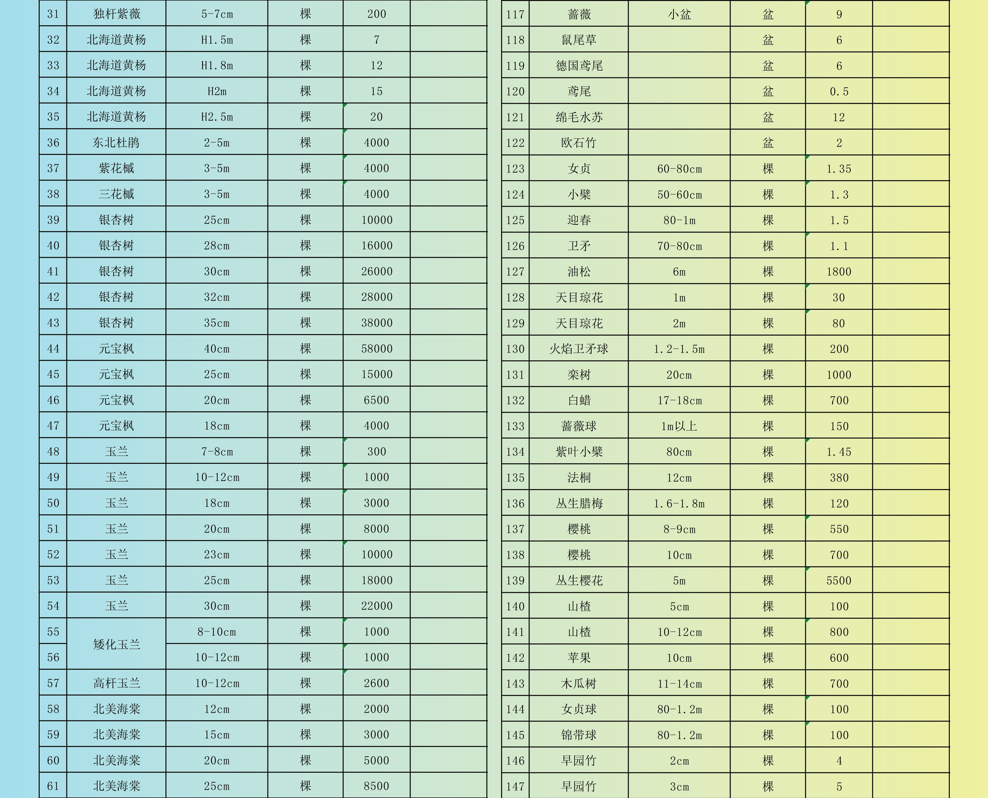 2026 年(第一季度)苗木花卉指导价