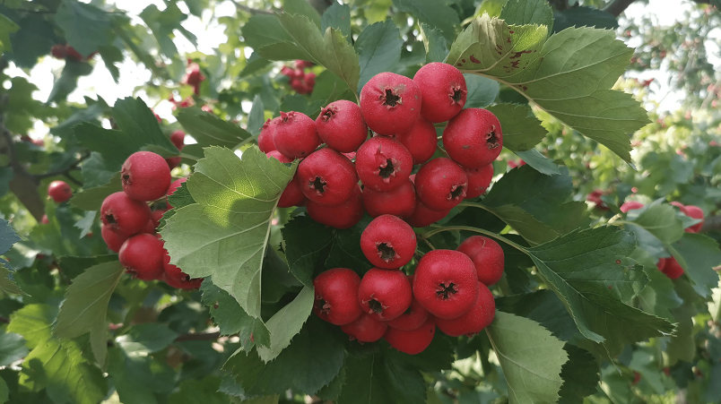 收获了山楂,直接吃往往太酸,很少有人能接受,制作成一串串红彤彤的冰糖葫芦在阳光下闪闪发光,不仅好吃,而且特别漂亮。山楂树原产于中国,在中国有着糖葫芦的悠久历史。山楂树属于蔷薇科山楂属的落叶乔木,花期在5-6月份,花朵呈簇状,呈红色或者暗红色果实,喜酸、喜光、喜湿润土壤,主根系发达,侧根也比较发达,多生长于50cm表层土内,山楂树很耐贫瘠,在贫瘠的土壤中也能生长很好!山楂树的适应性很强,因此栽植范围分布很广,品种很多,其中兴隆就是我国著名的山楂之乡,青州敞口山楂也是青州市山区主要的果树树种之一,在全国名列前茅,距今也有500多年的栽培历史。如何才能让山楂优质高产呢?种植时对选择地块有什么要求?