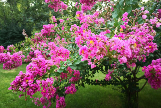很多北方的朋友不知道该养一些什么样的木本植物,就会经常询问一些容易开花、养护难度比较低的花。紫薇就是一个非常好的推荐品种,有庭院的可以直接地栽,种到土里,可以直接露天过冬的,如果说盆栽的话,冬天还好搬到室内,因为盆栽的紫薇花抗寒能力就很一般了。