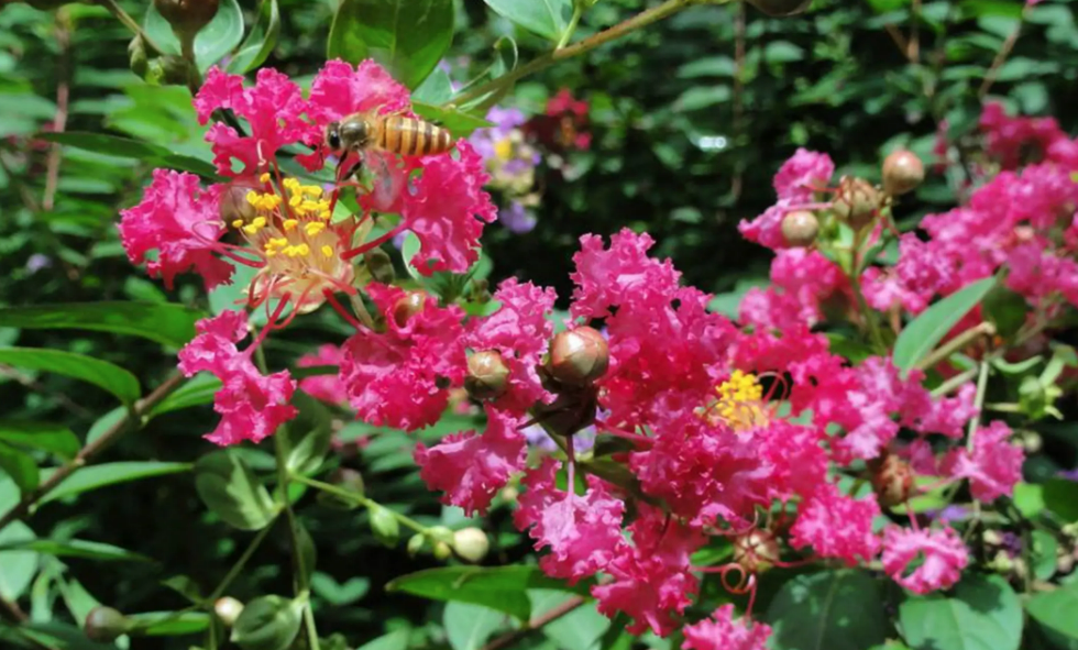 紫薇是一种抗性非常好的植物,不怕热、不怕旱也不怕涝,只需要给它一个大太阳,它就可以轻轻松松养好,而且它的花期超长。在整个夏天三四个月时间都持续不断地开花,花期整整有白天左右,这就是它为什么叫百日红的原因。它的一个养护可以说简单的不要不要的。只要给它充足的光照,旱得不行了就直接给它浇上水,这个时候就一定要注意控水了,浇透即可,不要积水,否则会有烂根。