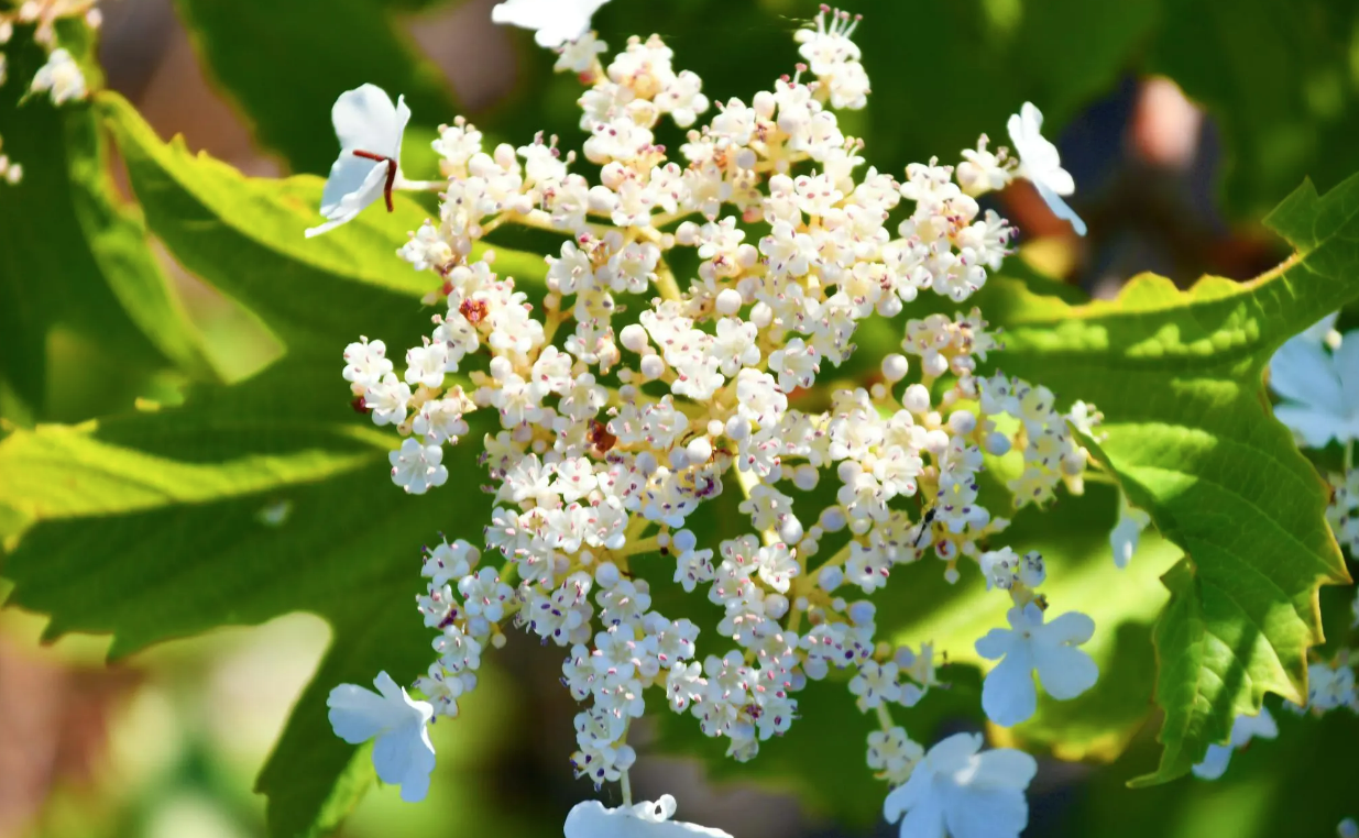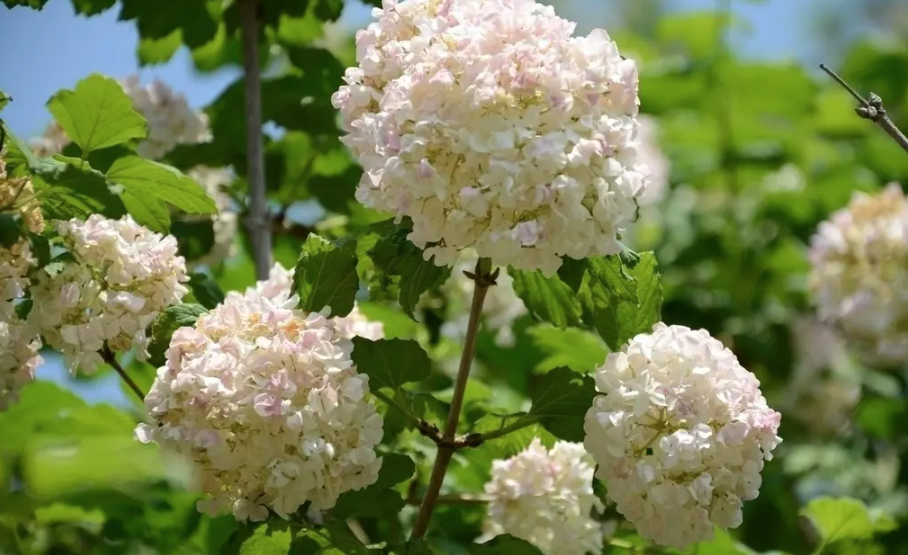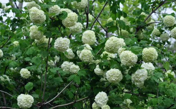 华源发苗木花卉市场中的欧洲荚蒾作为一种落叶灌木植物,5-6月便开花。花白色清雅,花期较长,观叶期长达200天,叶色随着季节的变化而变化,可增加绿地色彩。