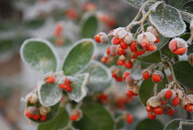 (3)冬季叶色深绿,在严寒冬季也没有变色现象,绿叶红果,观赏价值极高。