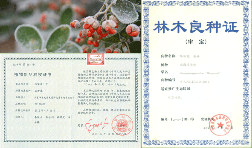 “华源发黄杨”是优选于抗寒的北海道黄杨植株,经扦插嫁接等无性繁殖抗寒性能优于普通北海道黄杨,为提早应用于园林绿化中通过高接于丝棉木上培育出黄杨小乔木,填补了我国北方无常绿阔叶树的空缺。