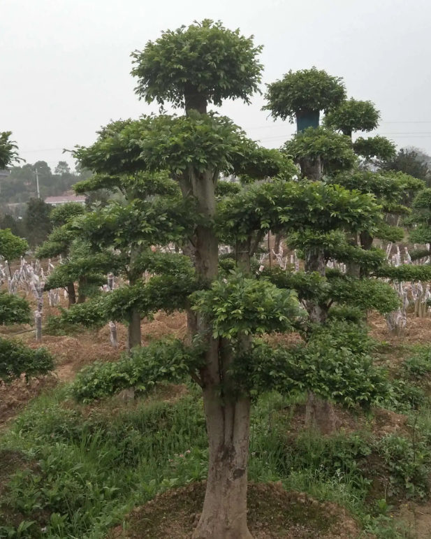 树冠造型榔榆形成基本骨架后,每年休眠期剪除枯枝、病枝、并列枝、内生枝等。短截各级侧枝,留20厘米至30厘米,促发分枝。疏除影响生长的徒长枝、重叠枝等。春季萌芽后,抹去过密或直立新梢,各级主侧枝一般留两三个芽,逐步培育树冠。在新枝伸长到10厘米时,留4至6个叶片,其余剪去,如此反复多次修剪使叶片生长茂密。生长期内随时除去其他萌芽,控制徒长,以免扰乱树形。榔榆萌芽力强,在生长期要弱剪,休眠期要强剪。