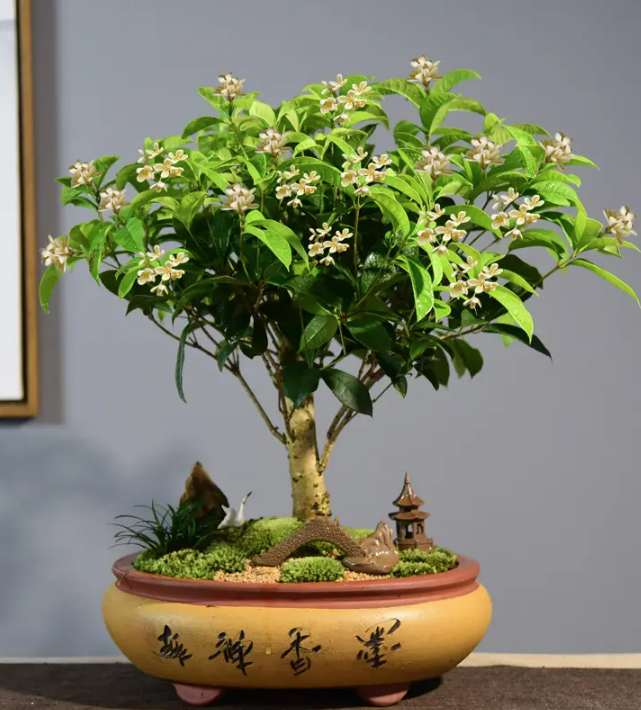 说起盆景,说法有很多,传说是在新石器时代的上古时期就出现了草本盆栽,成熟于汉代,盛行于唐宋,全面发展于明清,把自然的山河苗木用技法缩龙成寸来表现出艺术感。桂花是一种观赏价值非常高的树种,用桂花制作成的盆景,开花时芳香扑鼻,令人神清气爽。