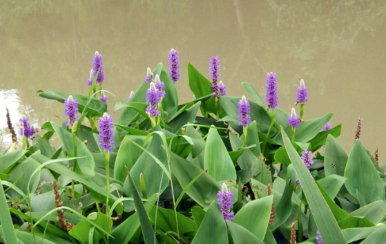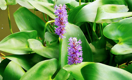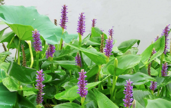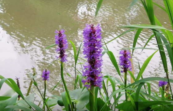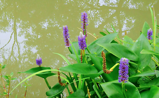 梭鱼草,别名海寿花,花瓣层叠串串紫,一串小鱼抖抖来。