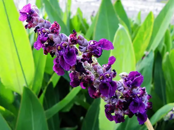 再力花的叶子是芭蕉形状的,也非常的好看,这样的花朵和它的叶子相搭配起来是一副比较不错的美景。再力花原产在美国南部和墨西哥的热带地区,是一种优秀的温室花卉,花柄可高达2米以上。是引入中国的一种观赏价值极高的挺水花卉。