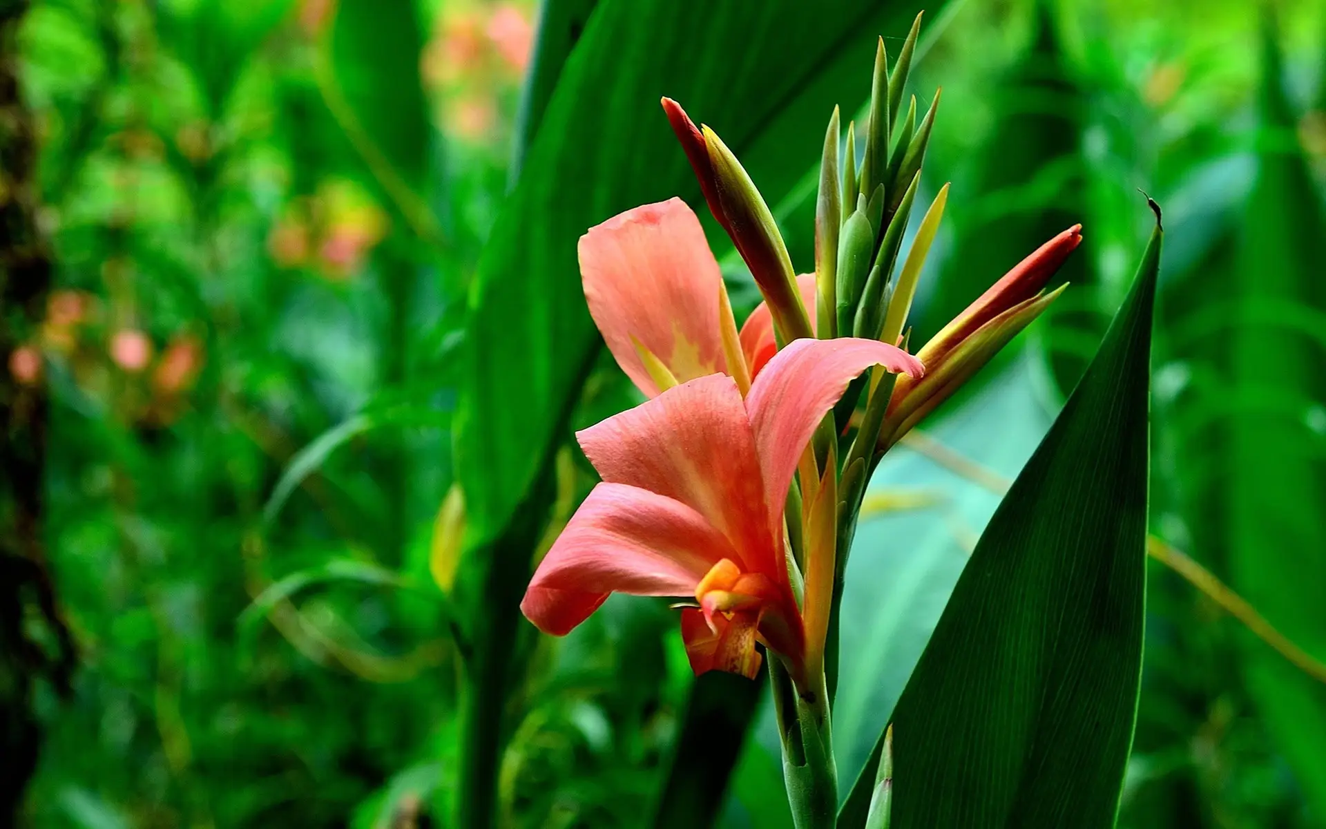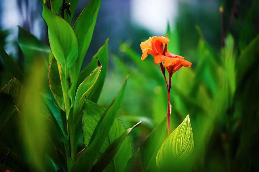 明朗的夏风,阳光和煦,清风吹来,美人蕉亭亭玉立,衣裙轻飘。美人蕉又名红艳蕉、昙华、兰蕉、矮美人等,佛教认为美人蕉是由佛祖脚趾所流出的血变成的,所以鲜红如许,也被叫做“昙华”。
