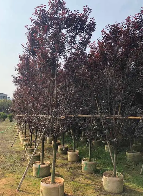 紫叶稠李是我国引进的彩叶树种,它原产自北美洲,由中科院北京植物园从北美引种,被人们又叫做加拿大红缨,在植物分类学中属于蔷薇科稠李属植物。现在我国东北、西北、华北等多地引种栽培,华源发苗木花卉交易市场自成立以来就引进紫叶稠李。